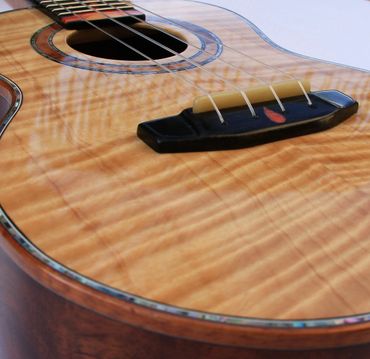 The Solid Figured Koa back and sides give the instrument the Hawaiian look and sound and it looks stunning.